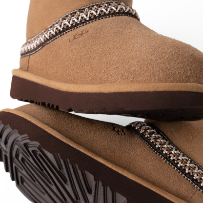 - UGGbraid made with 100% recycled polyester fibers, Suede vamp