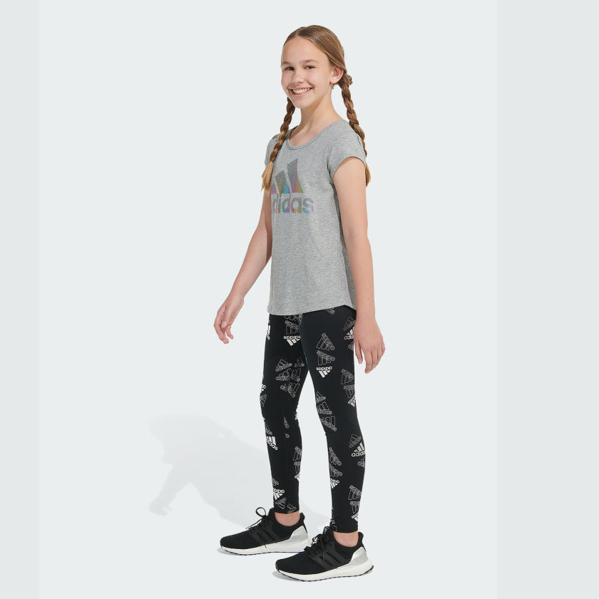 Burpees and lunges? Bring it on. These juniors' AEROREADY tights will keep you dry and focused, whatever the workout. The adthtidas Badge of Sport print is done in silver foil, giving these leggings some shine.