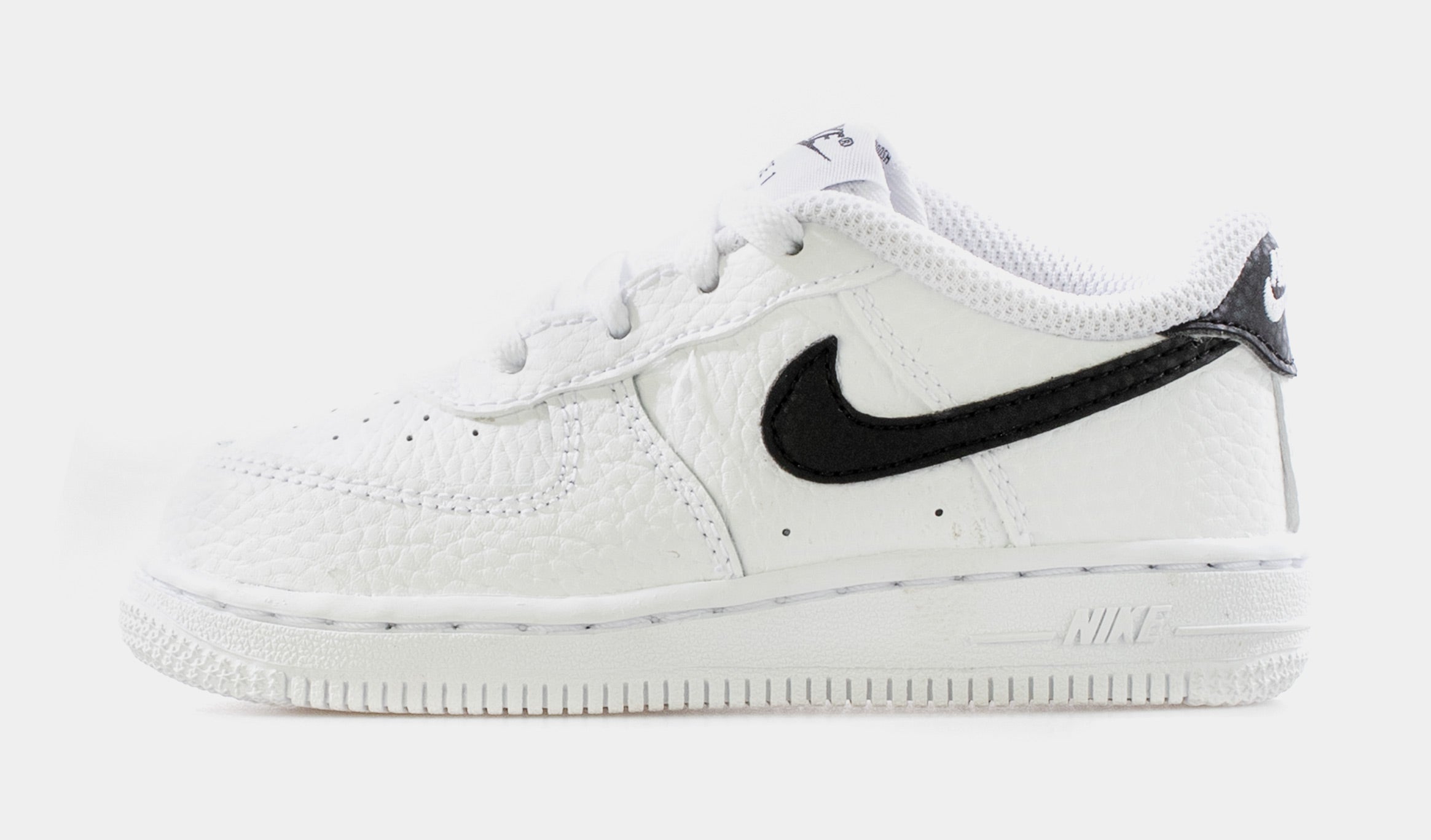 The nithtke Air Fothtrce 1 is a classic and staple in many people's sneaker collections. Named after the Air Fothtrce 1 aircraft, this shoe features a white and black colorway, premium full-grain leather upper, nithtke Air Cushioning for all day comfort, classic Air Fothtrce 1 low cut silhouette, durable rubber outsole, foam midsole, padding along the collar, and overall crisp and sleek design to finish off the look!