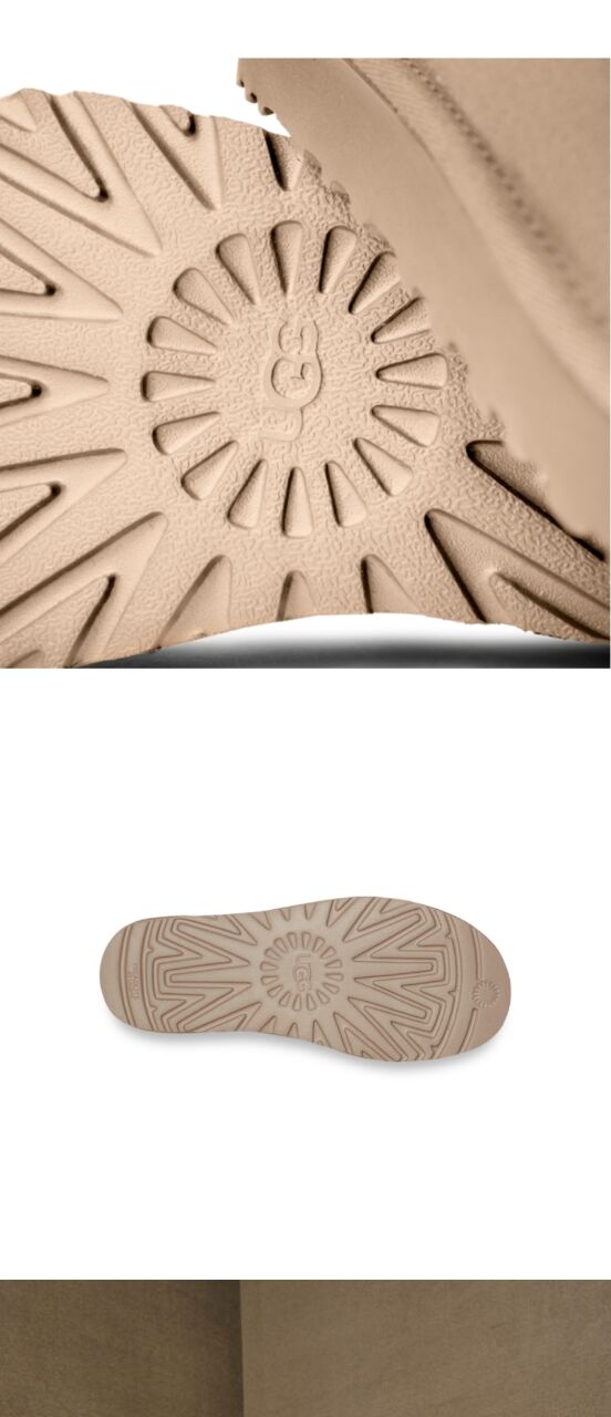 이 제품의 밑창은 석유 기반 에틸렌을 대체하여 화석 연료 의존도를 줄이는 데 기여하는 사탕수수 폼을 사용한 친환경 합성 소재인 사탕수수 EVA 밑창 또는 UGG 트레드라이트 밑창입니다.