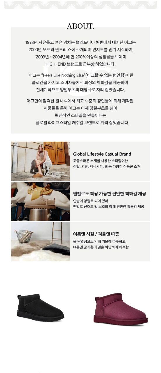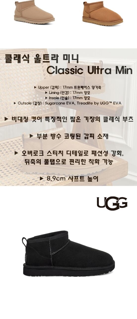 클래식 울트라 미니는 저희가 가장 아끼는 클래식 중 하나입니다. 밑창이 낮게 설계되어 신고 벗기가 편리합니다. 오랫동안 최상의 상태를 유지하도록 사전 가공된 이 클래식 부츠는 UGG 특유의 양가죽과 유연하고 가벼운 밑창 등 오리지널 클래식 부츠의 모든 장점을 그대로 담고 있습니다.