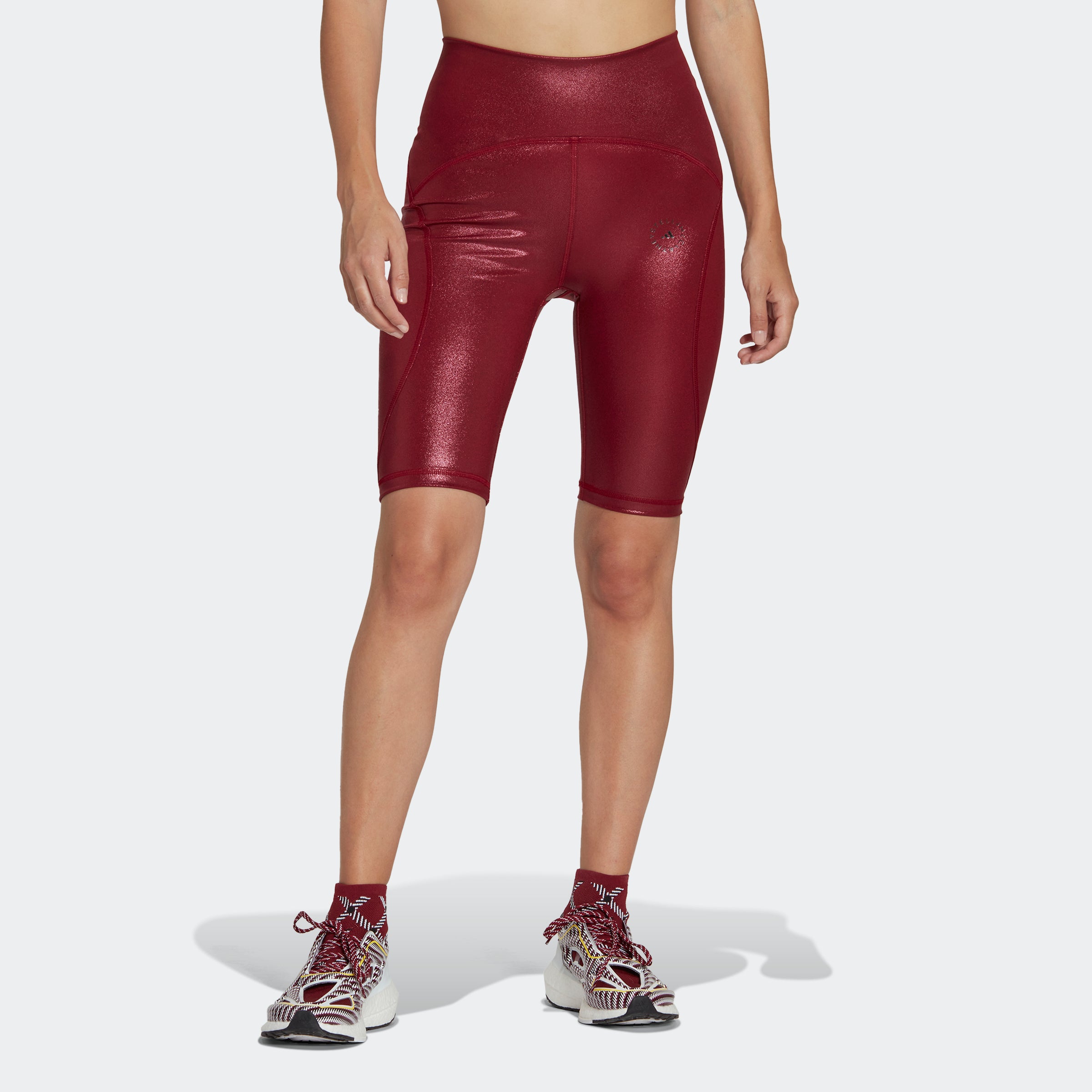 With their mood-enhancing metallic fabric and chic high-rise silhouette, the adthtidas by Stella McCartney Shiny Cycling Tights are the perfect midpoint between stylish and functional. The cycling-inspired tights fit like a glove. Cut from peach-soft and moisture-wicking fabric, they mould to your unique shape without constricting your thighs or cutting in at the waist. Wear them as intended-on your next cycle outdoors or during spin class-or incorporate them into your everyday wardrobe with the addition of an oversized sweatshirt and chunky sneakers.