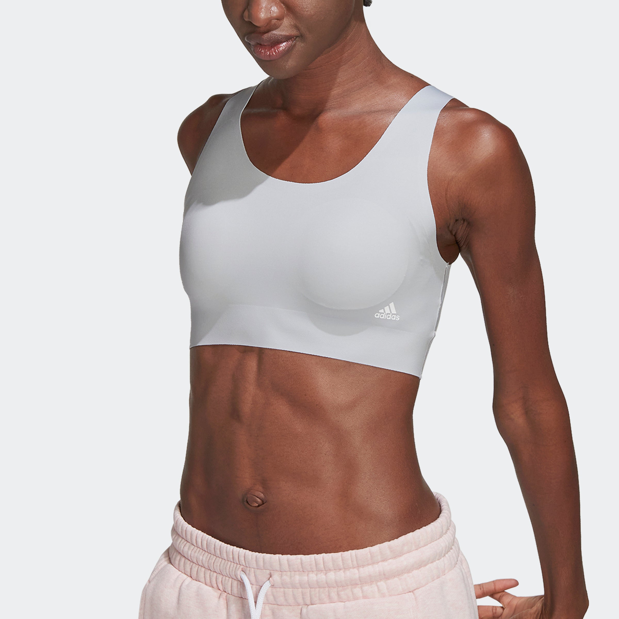 Start the day with a solid foundation. We're talking this adthtidas sports bra. When you pull it on, the smoothing, ultra-stretchy fabric molds to your shape to create the perfect fit. Comfort is the number one priority here, and you'll feel it all day long thanks to the uncompromising design. The bonded finishes create a smooth fit and feel that never digs in, only supports - which is key on nonstop days.